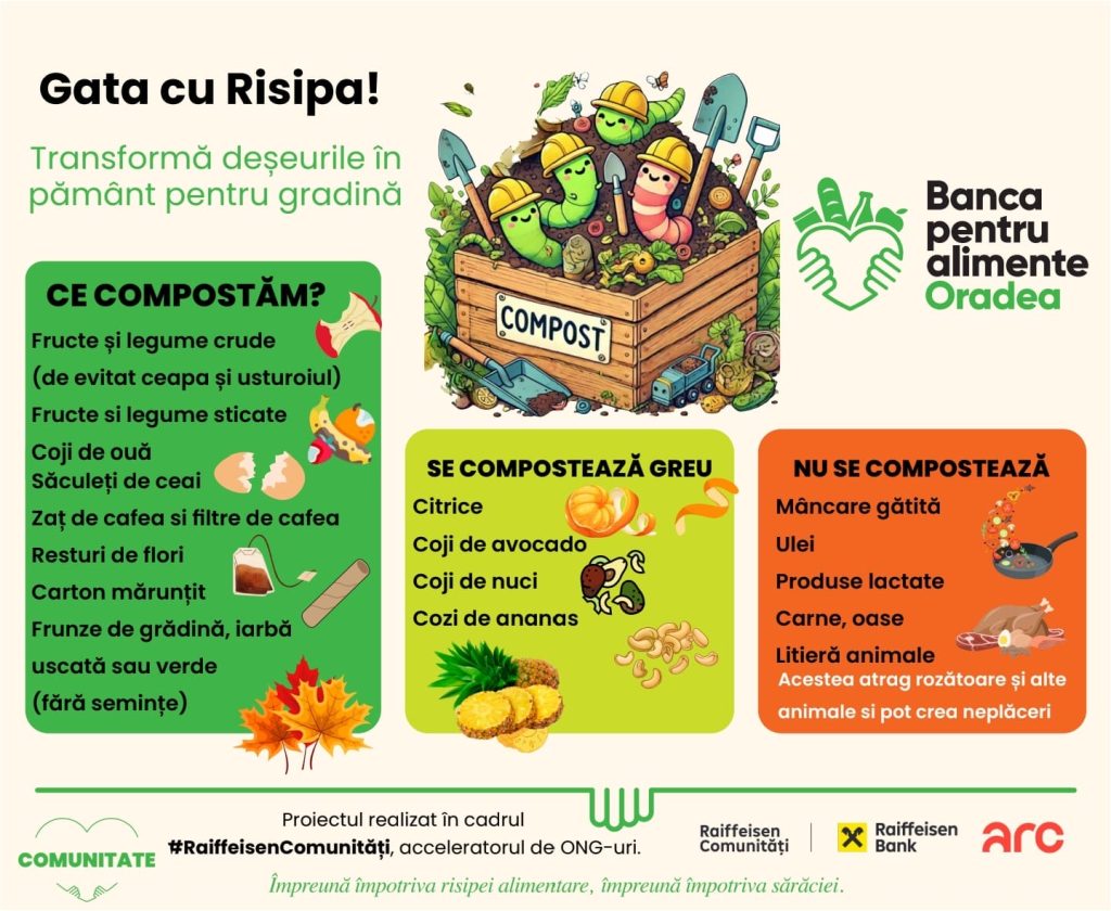 „Gata cu risipa!” este un proiect educațional și comunitar implementat de Banca pentru Alimente Oradea, cu sprijinul programului Raiffeisen Comunități – Acceleratorul de ONG-uri, gestionat de Asociația pentru Relații Comunitare.